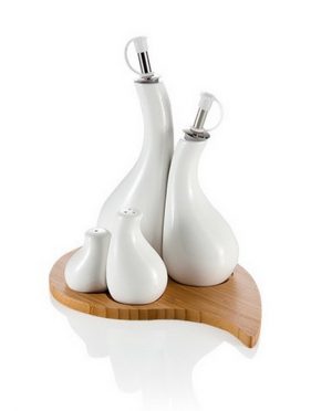 Antipastiera Butterfly in Porcellana Bianca e Bamboo con 3 Forchettine in Acciaio