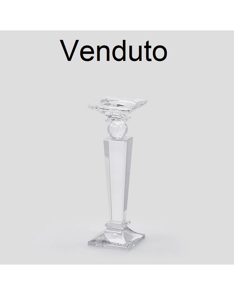 Questo candelabro in cristallo è una sinfonia di luce e trasparenza, una scultura raffinata che cattura l’essenza dell’eleganza. La sua struttura affusolata si eleva come una colonna di ghiaccio scolpito, riflettendo ogni raggio di luce in un balletto scintillante. La base solida sostiene con grazia una geometria cristallina che si espande verso l’alto, culminando in una sommità delicatamente squadrata, dove si trova una sfera con lavorazione Swarovski che riflette la luce con elegante raffinatezza. La forma squadrata e decisa riflette la luce con carattere rendendolo un oggetto che impreziosisce una tavola o un ambiente.