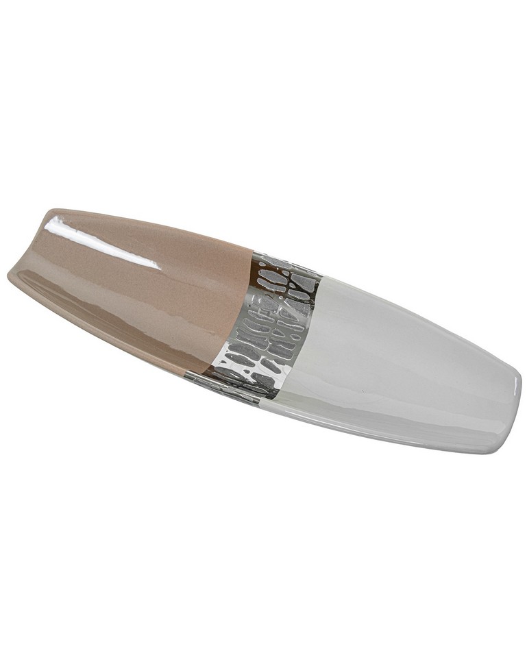 Questo svuota tasche è un’espressione di eleganza e modernità. Diviso in due parti, il suo design presenta una metà superiore in un tono tortora chiaro e una metà inferiore in un delicato bianco ghiaccio. La transizione tra i due colori è definita da una lavorazione a righe di colore argento, che crea una demarcazione netta e sofisticata tra le due sezioni del vassoio. Questa lavorazione conferisce un tocco di brillantezza e dinamicità al design complessivo, aggiungendo un elemento visivo interessante e contemporaneo. La combinazione di colori neutri e la lavorazione rifinita rendono questo svuota tasche un complemento perfetto per qualsiasi ambiente, aggiungendo stile e funzionalità alla tua casa o al tuo ufficio.