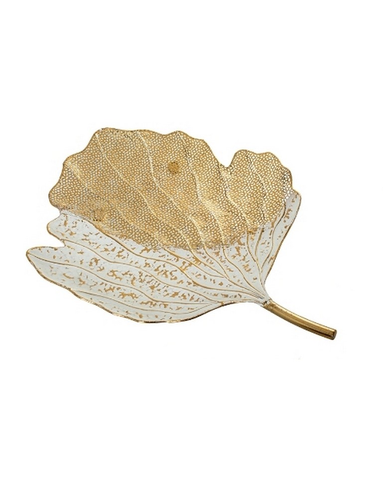 Centrotavola Foglia di Design in Metallo Oro e Bianco