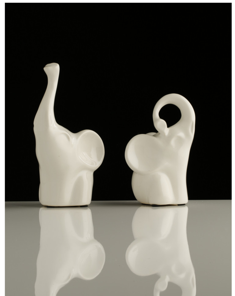 Coppia Elefantini in Ceramica Bianca