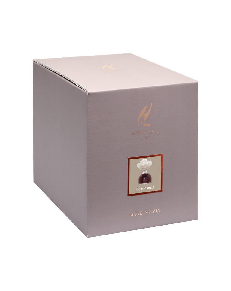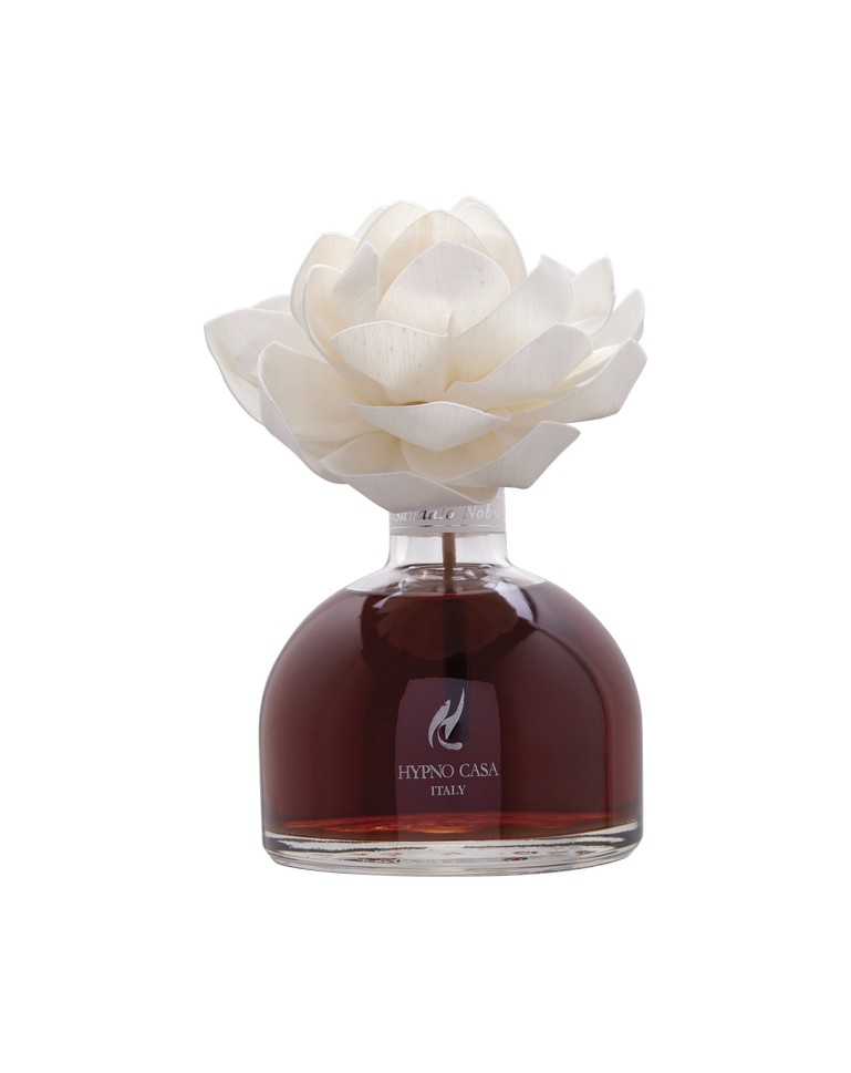 La semplicità delle linee incontra l’eleganza e l’armonia della natura in un profumatore che oltre a diffondere l’essenza arreda con uno naturale, raffinato e sobrio, l’equilibrio perfetto tra l’artigianato italiano e un’esperienza olfattiva lussuosa. A coronare l’elegante ampolla in vetro, una maestosa e candida corolla in legno naturale agisce da cuore pulsante del diffusore. Questa sofisticata “fioritura” non è solo un dettaglio estetico: grazie alla tecnologia capillare, assorbe lentamente l’essenza, cambiando gradualmente tonalità e sprigionando la fragranza nell’aria in modo costante e sublime.