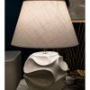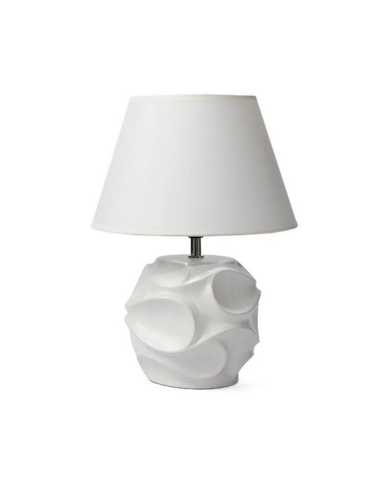 Questa lampada esprime un’eleganza moderna attraverso il suo design scultoreo e sofisticato. La base, realizzata in ceramica bianca lucida, presenta forme fluide e ondulate che ricordano un’opera d’arte astratta, conferendo un tocco contemporaneo e distintivo. Il paralume in tessuto chiaro, con una delicata texture incrociata, diffonde una luce soffusa e avvolgente, perfetta per creare un’atmosfera intima e accogliente. L’intero pezzo rappresenta un equilibrio raffinato tra funzionalità e stile, ideale per arricchire ambienti eleganti e moderni.