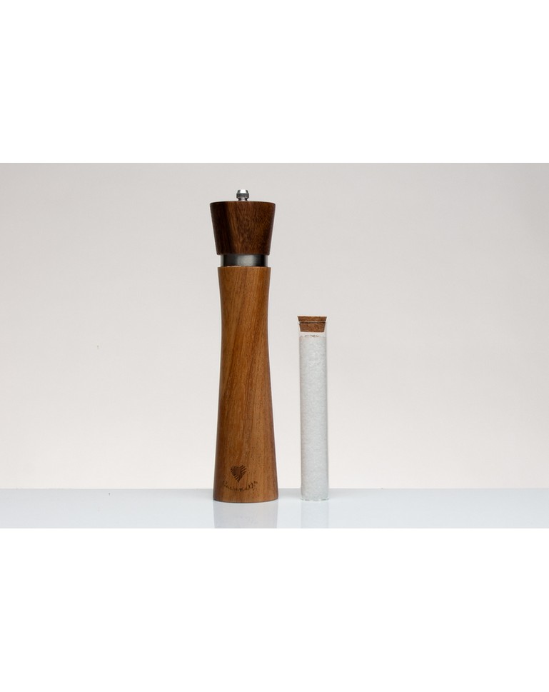 Di ispirazione tradizionale questo elegante macina sale è un’idea regalo perfetta per un ambiente a cui si vuole donare un tocco di tradizione dal sapore moderno. Nella confezione è compresa una simpatica provetta contenente del sale bianco, idea bomboniera accattivante.