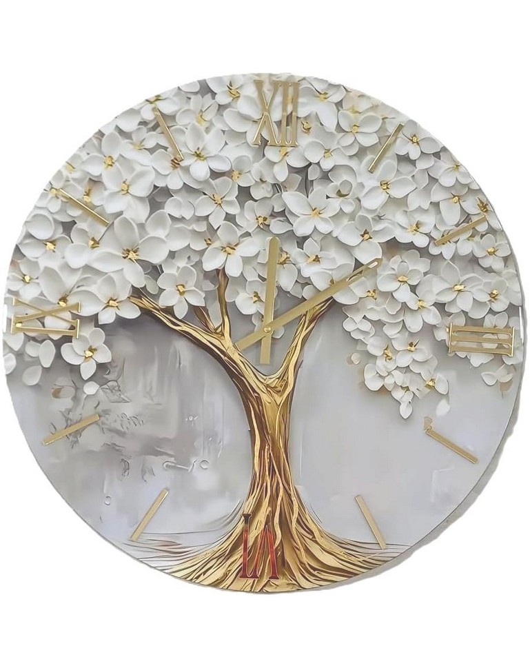 Porta la serenità di un giardino in fiore e la forza secolare di una quercia direttamente sulle pareti della tua casa. Questo orologio non è un semplice strumento per misurare le ore, ma un’opera d’arte materica che ridefinisce il concetto di decorazione d’interni. Realizzato attraverso una sapiente fusione di legno e resina, questo orologio celebra la bellezza organica attraverso un contrasto cromatico sofisticato. Un’esplosione di fiori che sembrano vibrare di luce propria. Le venature dorate del legno si intrecciano con forza verso la base, simboleggiando radici solide e una crescita costante. Il lusso risiede nei particolari. Per questo abbiamo scelto finiture che trasmettono un’eleganza senza tempo, le lancette in Metallo color Champagne, i numeri romani e le barre orarie sono tagliati a laser con estrema precisione. La finitura champagne del plexiglass dona una lucentezza moderna e una leggibilità impeccabile, fondendosi armoniosamente con il tema dorato dell’opera. Non un semplice orologio ma un vero accessorio d’arredo.