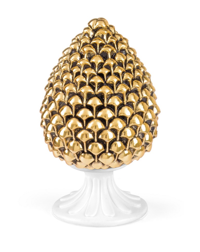 La Pigna Siciliana simbolo di fertilità, prosperità e abbondanza. Realizzata in resina in bagno d’oro, un porta fortuna elegante che arreda.