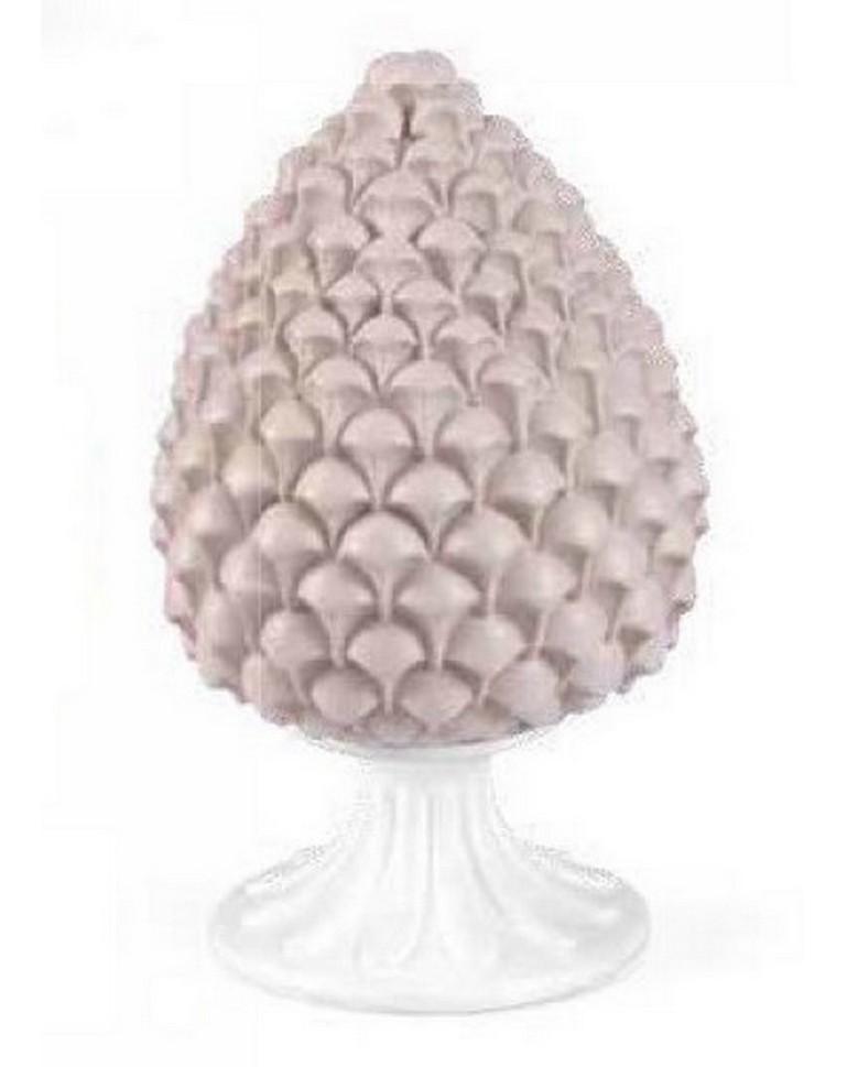 La Pigna Siciliana simbolo di fertilità, prosperità e abbondanza. Realizzata in resina con un elegante colore tortora e base colore bianco, un porta fortuna elegante che arreda.