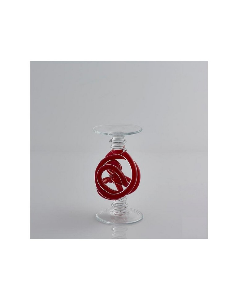 Candelabro in vetro bianco con originale intreccio decorativo.H22 d12
