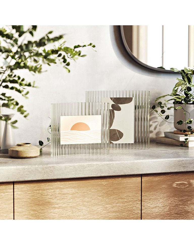Con un retro ad arco in vetro a coste, questa cornice moderna è il regalo perfetto, Striped è una cornice unica ed elegante, con un supporto curvo a forma di arco e una copertura fluttuante per mostrare le tue foto preferite. Può essere utilizzato per visualizzare immagini verticali o orizzontali, basta svitare la manopola e riorientare la copertina dell’immagine.