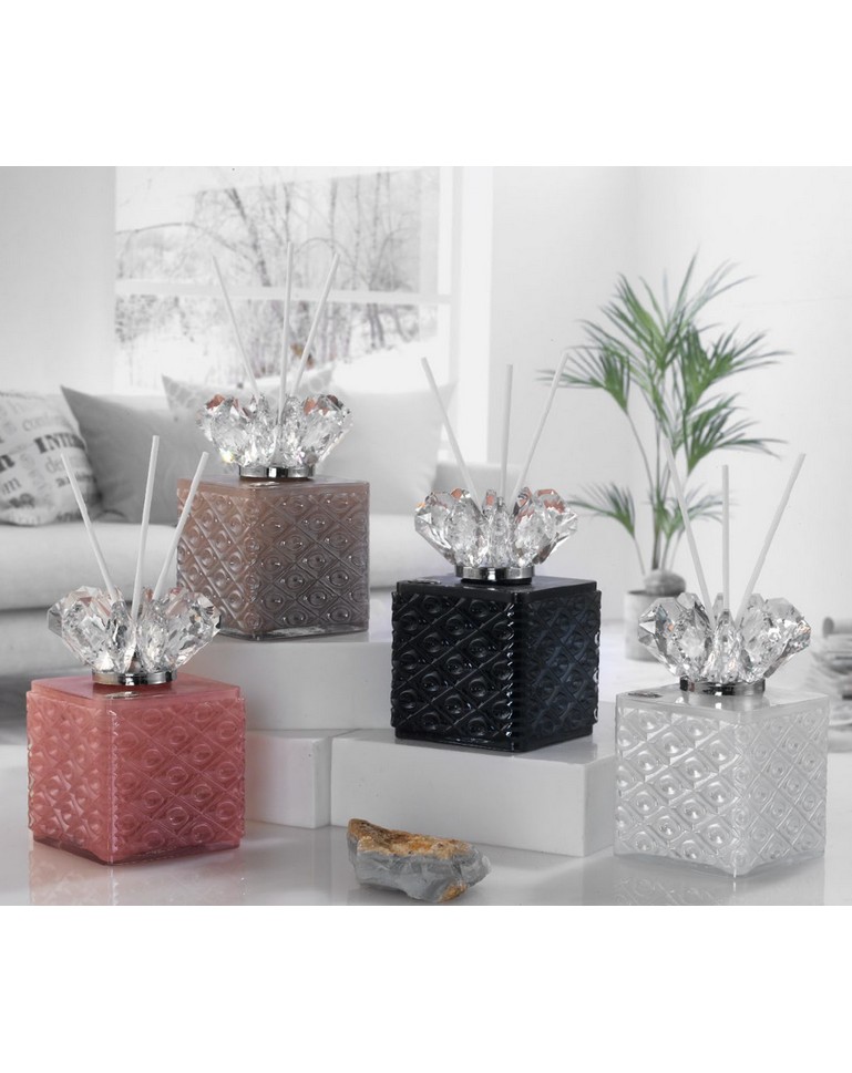 Un profumatore d’ambiente che incanta lo sguardo e i sensi, con un diffusore in cristallo purissimo, finemente lavorato a forma di fiore, che cattura la luce e la rifrange in un caleidoscopio di scintillii. I petali di cristallo, delicati e trasparenti, sembrano fluttuare nell’aria, diffondendo nell’ambiente una fragranza raffinata e avvolgente. La base bianca, luminosa, esalta la purezza del cristallo e la delicatezza del design. La confezione, un’elegante pochette realizzata in cellulosa di alta qualità, è un vero e proprio scrigno che custodisce questo gioiello di design. La tonalità neutra e la texture delicata della cellulosa conferiscono un tocco di modernità ed eleganza, mentre la forma a pochette la rende un oggetto da esibire con orgoglio. Questo profumatore d’ambiente non è solo un diffusore di fragranze, ma un vero e proprio complemento d’arredo, capace di impreziosire ogni ambiente con la sua presenza raffinata e luminosa. Un regalo perfetto per chi ama circondarsi di bellezza e creare atmosfere suggestive.