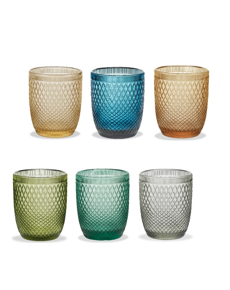 Progettati per incantare e resistere al tempo, questi bicchieri sono l’alleato perfetto per elevare l’estetica della tua tavola, dalla colazione alla cena, passando per aperitivi con gli amici. Ogni bicchiere è un piccolo capolavoro di design, caratterizzato da una texture a rombi in rilievo che non solo aggiunge un tocco di sofisticata eleganza, ma offre anche una presa ergonomica e antiscivolo. La luce si rifrange magnificamente sulla superficie sfaccettata, creando giochi di brillantezza che illuminano la tua tavola. Realizzati in vetro di alta qualità, questi bicchieri sono robusti, resistenti e progettati per l’uso quotidiano. La loro composizione li rende facili da pulire e adatti per l’utilizzo in lavastoviglie, garantendo praticità senza sacrificare lo stile. Perfetti per acqua, succhi, bibite o bevande spiritose, sono versatili e indispensabili in ogni cucina moderna.