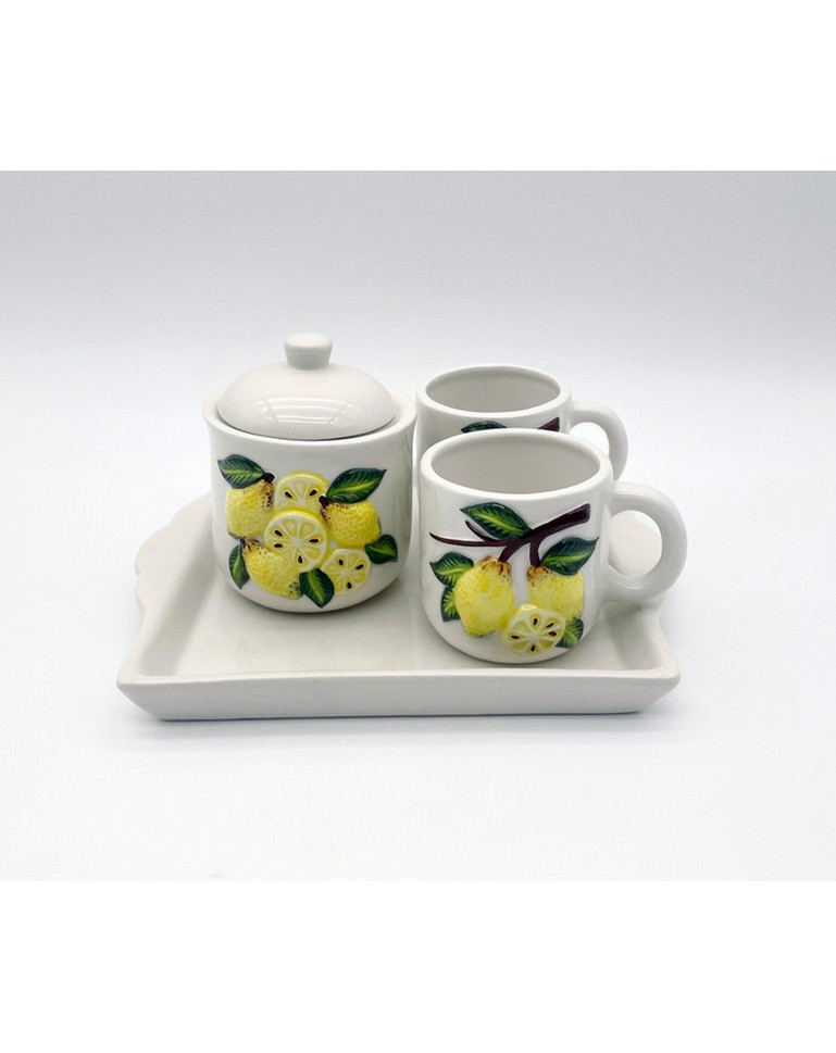 Set Caffè in Ceramica con Limoni – Zuccheriera e Vassoio Inclusi