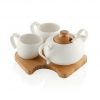 Set Caffè in Porcellana Bianca con vassoio in legno di Bamboo