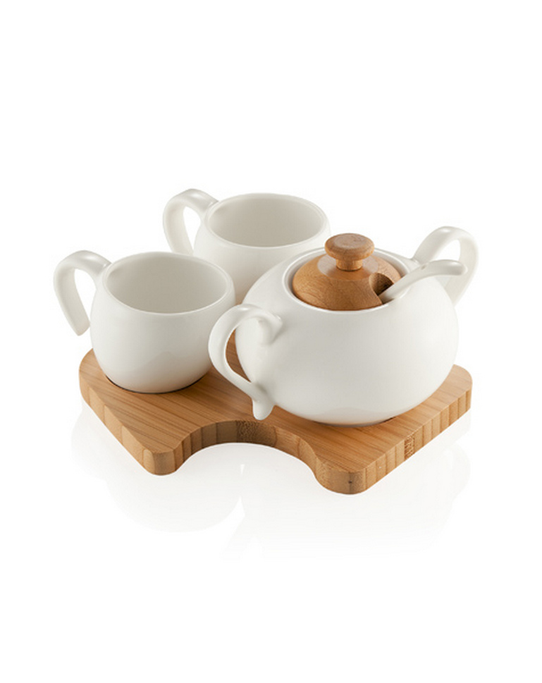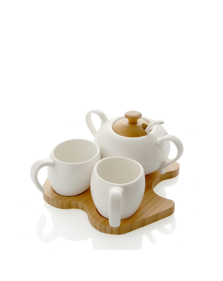 ad elementi quali le due tazze in porcellana ed al vassoio in bamboo capaci di coniugarsi