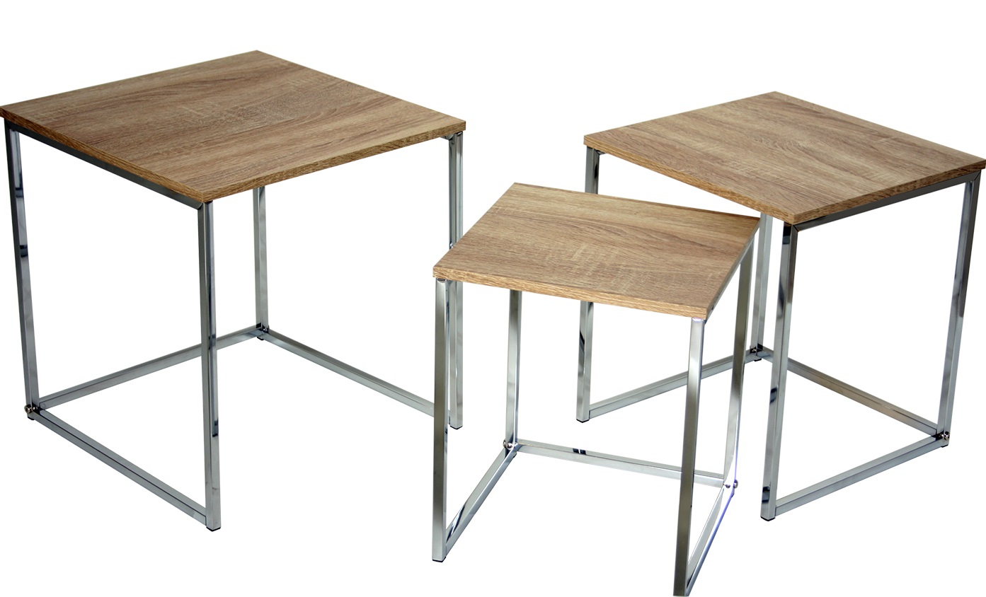 Tavolo basso con struttura in acciaio e superfice in legno color Tortora.