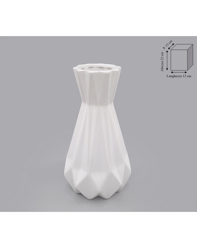 Scopri l’eleganza scultorea di questo vaso in ceramica bianca, dove un gioco dinamico di pieghe e sfaccettature cattura lo sguardo e valorizza la bellezza naturale dei tuoi fiori. La sua forma sinuosa, che si restringe delicatamente verso l’alto, crea un equilibrio visivo raffinato, perfetto per esaltare steli singoli o piccoli bouquet. La superficie ceramica, liscia e luminosa, interagisce con la luce creando un affascinante contrasto di chiaroscuri sulle sue pieghe, aggiungendo profondità e dinamicità all’oggetto. Questo vaso non è semplicemente un contenitore, ma un elemento di design che arricchisce l’ambiente con la sua presenza discreta ma distintiva. Ideale per aggiungere un tocco di modernità sofisticata a un tavolino, una mensola o una scrivania, questo vaso si adatta con versatilità a diversi stili d’arredamento, diventando un protagonista silenzioso ma di grande impatto visivo. Lascia che i tuoi fiori sboccino in un abbraccio di design, scegli la raffinata semplicità di questo vaso in ceramica bianca.