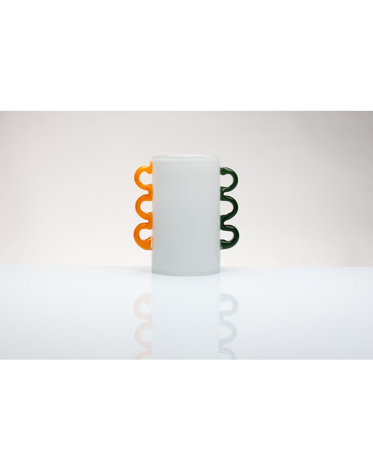Elegante, minimalista, originale. Il bianco del vetro conferisce un aspetto pulito e contemporaneo, i decori laterali colorati giallo e verde aggiungono un tocco di vivacità e personalità. Il Decoro laterale realizzato in vetro colorato conferisce un tocco di freschezza e gioia al design complessivo.