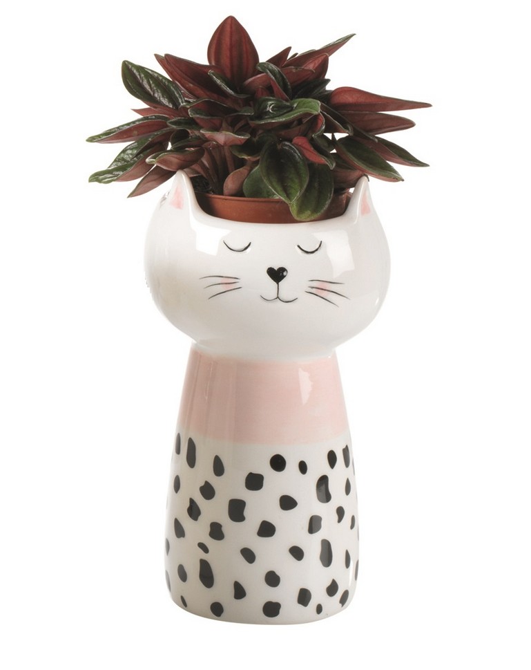 Grazioso vasetto realizzato in ceramica, ideale per decorare un piccolo angolo di casa con un simpatico design.